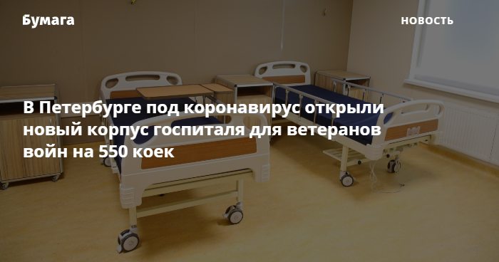 Обновление. Изначально в новости утверждалось, что под коронавирус открыли новый корпус госпиталя для ветеранов войн, однако это не соответствует действительности. Перепрофилированы уже существовавшие помещения. Приносим извинения.
