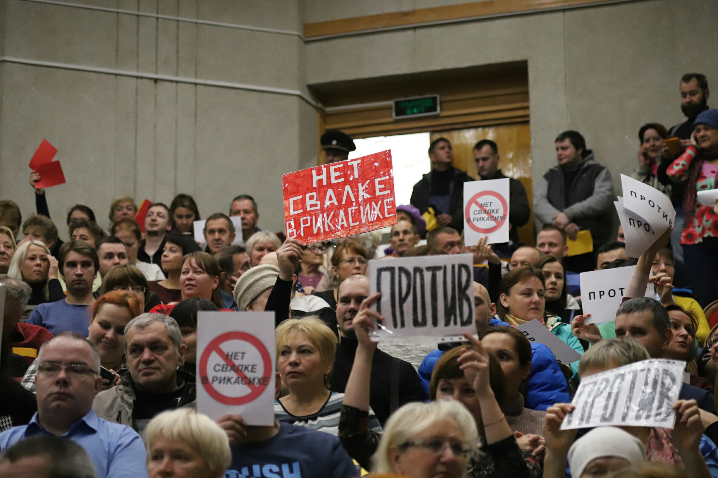 Первые слушания в июне закончились громким скандалом, и их результаты муниципальная власть была вынуждена отменить, так как общественности стало достоверно известно о завезенных на слушания гастролерах для принятия очевидного решения. Во вторых слушаниях 14 октября 2018 года приняло участие рекордное количество горожан - 1348. Организаторам слушаний также было подано небывалое количество обращений и замечаний - 4699. Большой зал ЦКиОМ не смог вместить всех желающих, и люди стояли в проходах, в фойе и даже на улице. Начало слушаний опять было скандальным. Жители требовали открытого голосования, в то время как глава города Игорь Скубенко, так и не удосужившийся даже принять участие в обсуждении важного вопроса для горожан, подписал постановление о проведении слушаний с тайным голосованием. Отсутствие главы города многие объясняли тем, что решение о размещении свалки в Рикасихе уже окончательно принято, а общественные слушания, хотя и являются обязательной процедурой, носят лишь рекомендательный характер для власти. Тогда главным доводом лоббистов свалки под Рикасихой было то, что северодвинский полигон переполнен и нас ожидает мусорный коллапс уже в ближайшем будущем. Каждый день по ТВ и в инете нас пугали ужасными сюжетами о надвигающейся мусорной катастрофе. Но, как мы видим, этого ничего не случилось, тема сошла на нет и совершенно очевидно, что нас всех тогда просто дурачили.