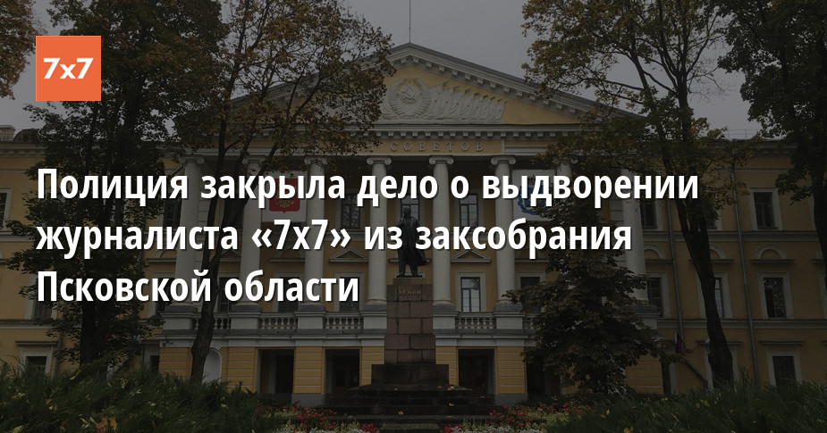 Полиция закрыла административное дело в отношении советника председателя Псковского областного собрания депутатов Владимира Борачука, который в марте вывел журналиста «7х7» Ивана Журавкова за локоть из зала заседаний. Дело расследовалось около полугода и было закрыто в связи с отсутствием состава административного правонарушения через день после публикаций СМИ о его возбуждении.