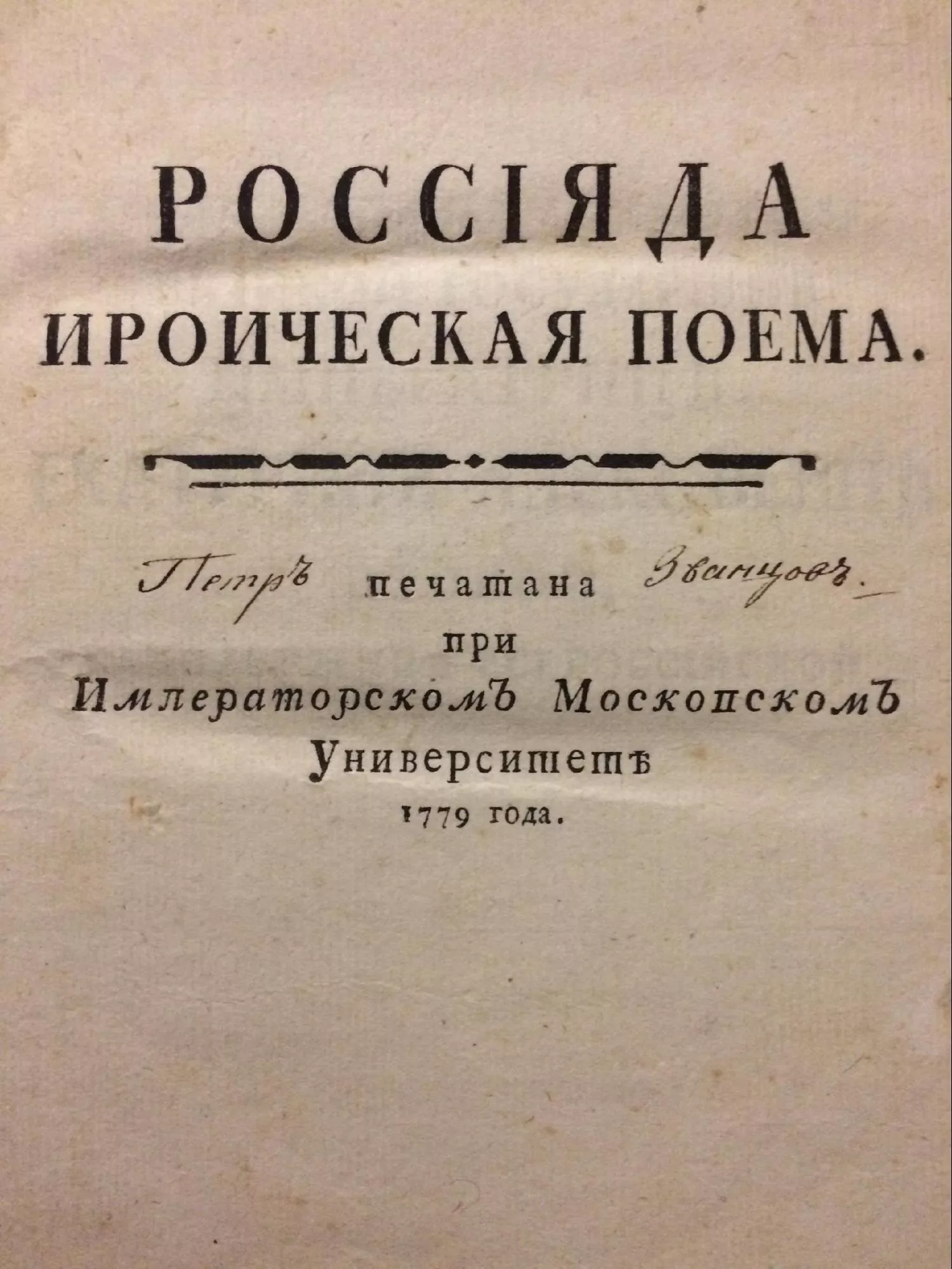 Экземпляр первого издания «Россиады» из моей библиотеки некогда принадлежал Петру Званцову