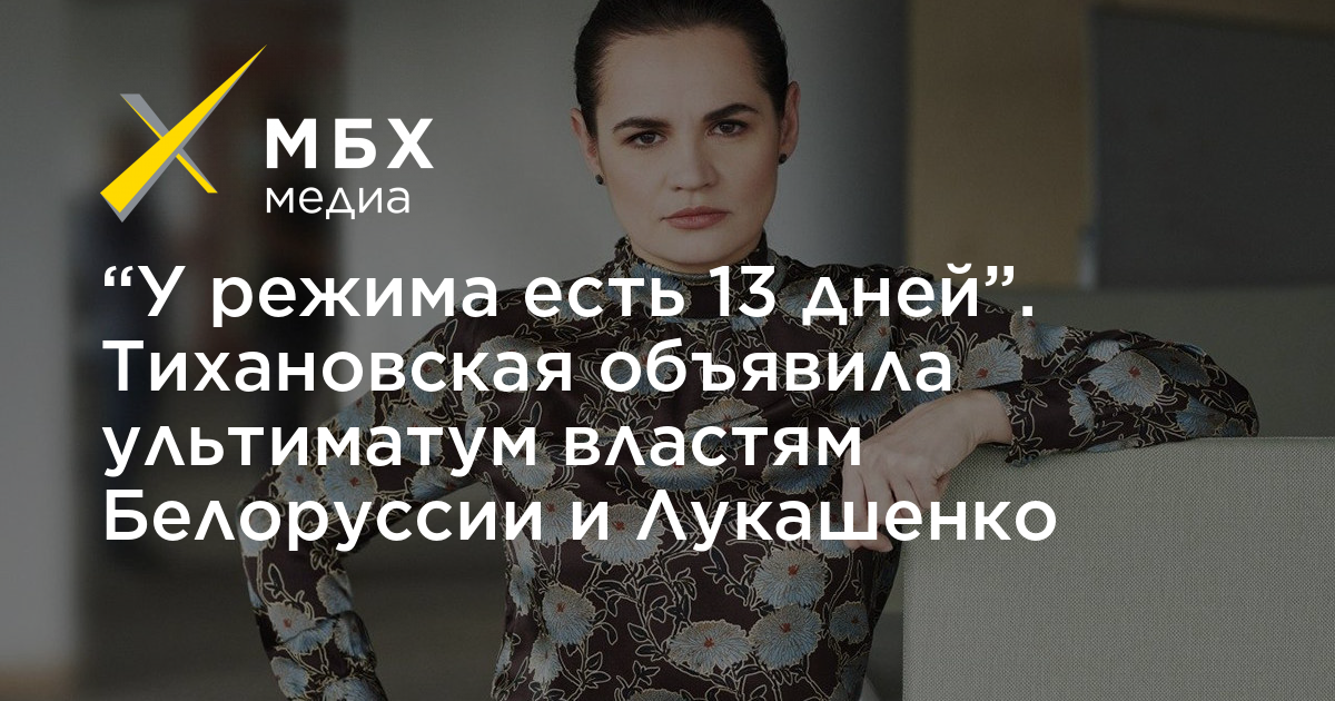 «Если до 25 октября наши требования не будут выполнены, вся страна мирно выйдет на улицы с Народным Ультиматумом. И 26 октября начнётся национальная забастовка всех предприятий, блокировка всех дорог, обвал продаж в государственных магазинах. У вас есть 13 дней, чтобы выполнить три условия», — заявила Тихановская.
