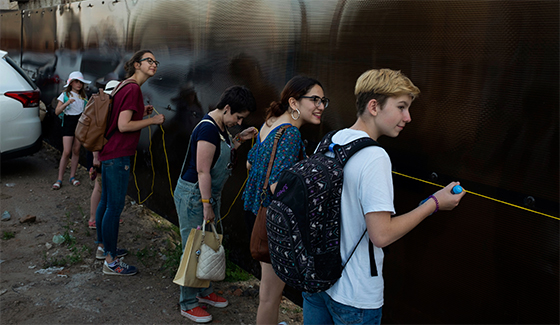 © Анна Сопова Совместное действие-перформанс «Выстраивание горизонта» с участниками экскурсии на выставке-экскурсии в трех частях «Это очень странное место», 3-я часть, группа «Войти и разрешить», 7-я Московская биеннале молодого искусства, 2018 Проблемы, которые мы решаем