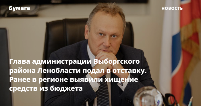 Глава Выборгского района Ленобласти Геннадий Орлов объявил о своей отставке. Об этом сообщается на официальном сайте администрации региона.