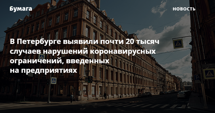 В Петербурге выявили почти 20 тысяч случаев нарушений коронавирусных ограничений, введенных на предприятиях