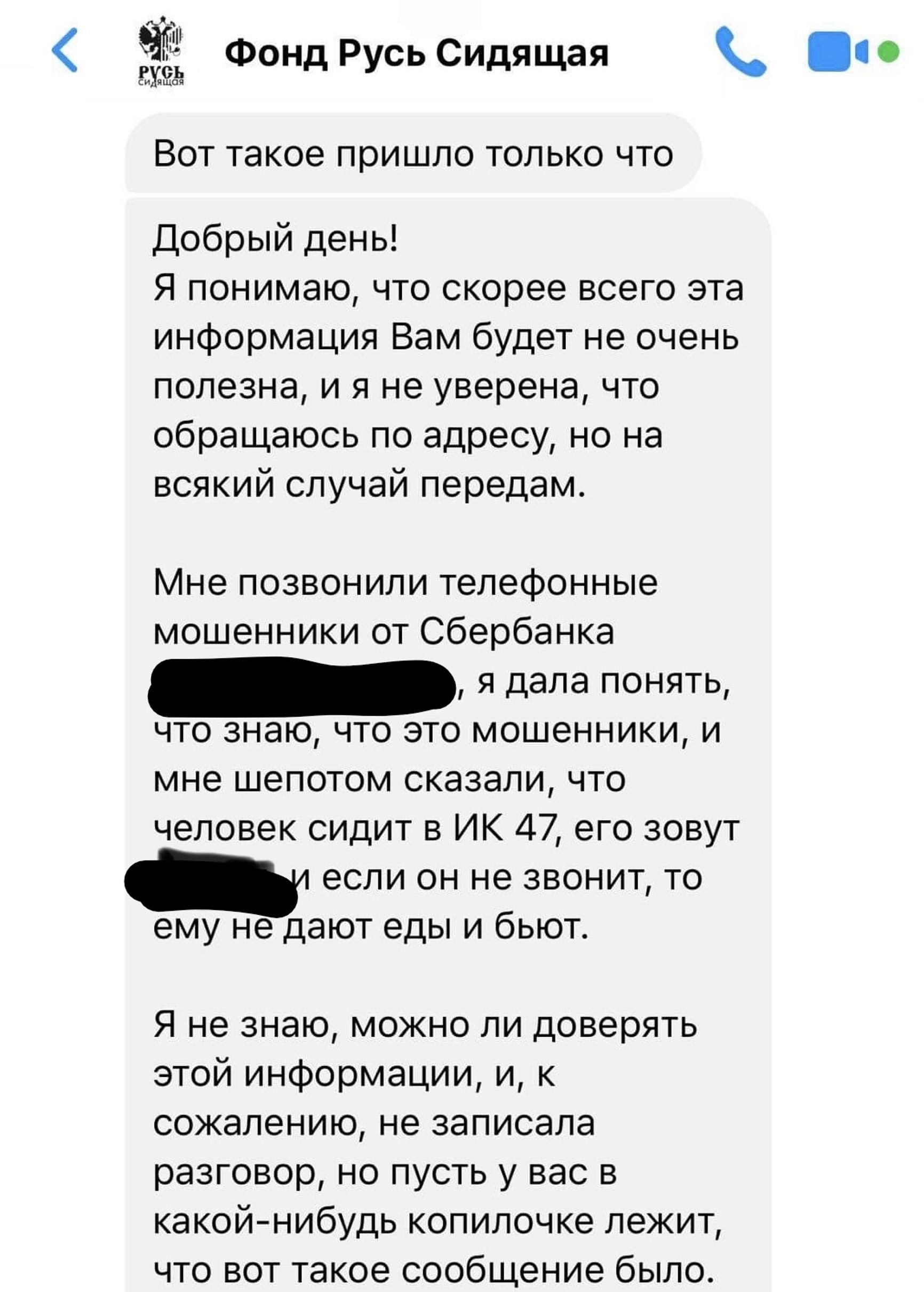 Всё верно. Не кормят и пытают, поэтому они вам и звонят. Не от хорошей жизни они это делают. И часто не по собственной воле. Нам в «Русь Сидящую» часто пишут люди, которые не стали жертвами, но им позвонили. Всё как по нотам: это колл-центр, вы совершили перевод, скажите код из смс, вдруг полушёпотом: «Помогите. Это ИК-47». Специально оставляю реальный случай, реальный номер ИК. Легко вычислить, мало где есть ИК с таким номером. Это Каменск-Уральский, Свердловская область.