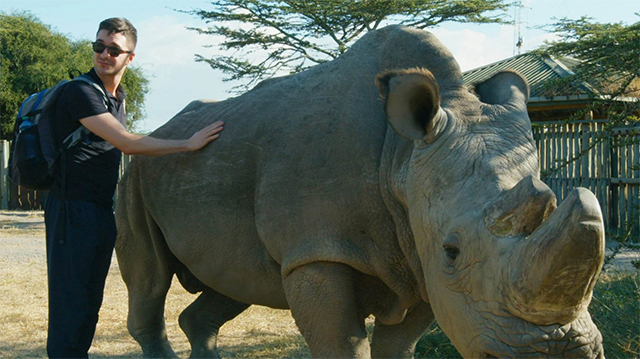 Голландка Флор ван дер Мюлен фиксирует три последних года жизни почтенного самца. К преклонному возрасту он стал суперзвездой мира животных. Туристы приезжают, чтобы прикоснуться к нему как к священной реликвии; ухаживающие за ним сотрудники заранее начинают прощаться со своим любимцем и рассказывают, как он изменил их жизнь; собираются международные комиссии, долго и мучительно решающие, как бы не дать другим редким видам повторить судьбу северного белого носорога. Сам зверь всей шумихи вокруг не замечает и остается верен себе. Он погружен в привычный быт: пощипать травку, поваляться в грязи и постоять на солнышке.