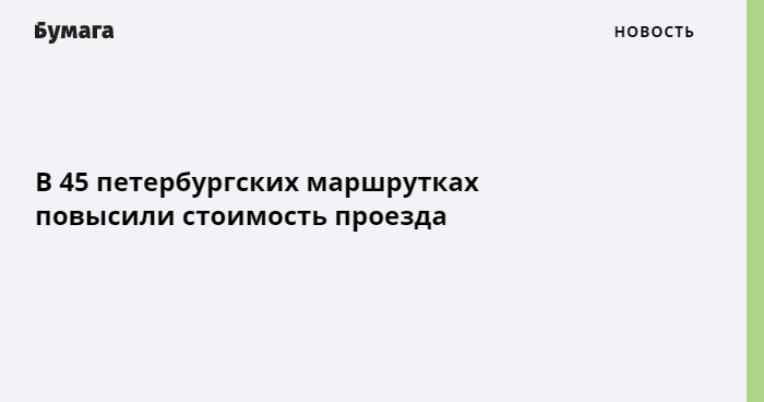 В «Третьем парке» сказали, что цена проезда выросла в 45 маршрутках. Стоимость повысили на направлениях с нерегулируемым тарифом, где прежде стоимость проезда не превышала 50 рублей. Подорожание составило от 1 до 6 рублей. Полный список подорожавших маршрутов опубликовала «Фонтанка».