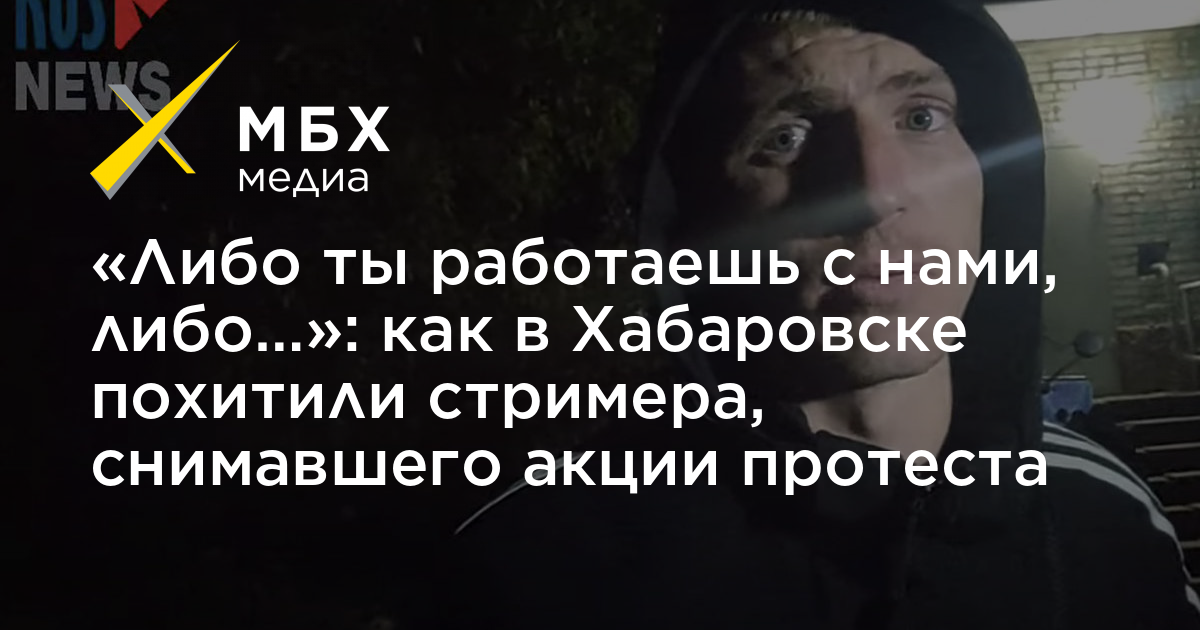 Стример канала RusNews Сергей Плотников делает трансляции с акций протеста в Хабаровске. Вечером 15 октября его похитили неизвестные — и нашелся он только через несколько часов. Плотников рассказал «МБХ медиа», кого он подозревает в похищении, что с ним делали в лесу и как это повлияет на выпуск трансляций.