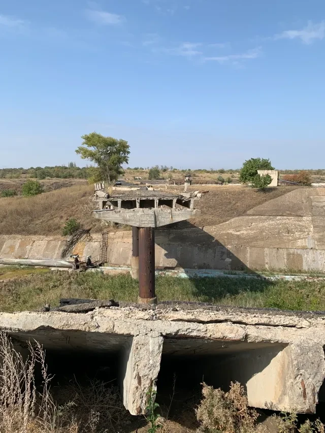 — …Во-первых, мы хитрые. Во-вторых, — умные, — Шапкин роняет скучным тоном, когда в Павлополе останавливаемся возле действующей понтонной переправы через Кальмиус. Переправу навели военные. В 2014-м, когда из оккупированного уже Новоазовска на Мариуполь двигалась танковая колонна, старый мост взорвали. Бетонные пролеты до сих пор свисают в обмелевшее русло, дамба не пострадала.