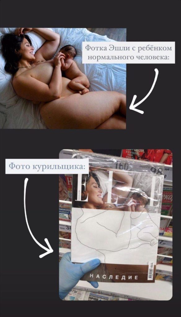 Обложку октябрьского выпуска журнала Elle в России наполовину закрыли рисунком — в отличие от американской версии. Там была фотография обнаженной супермодели Эшли Грэм с ребенком. В редакции журнала «Таким делам» это решение объяснили возрастным ограничением 16+.