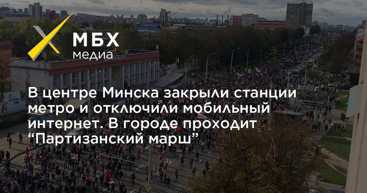 В центре Минска закрыли станции метро и отключили мобильный интернет. В городе проходит «Партизанский марш»