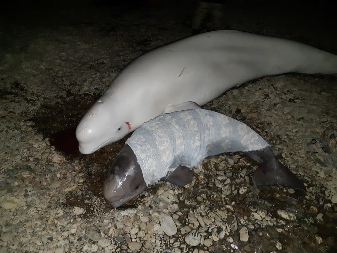 Спасатель был с животными до темноты, когда миновала угроза от зверей и браконьеров. Ближе к полуночи белухи самостоятельно уплыли в море.