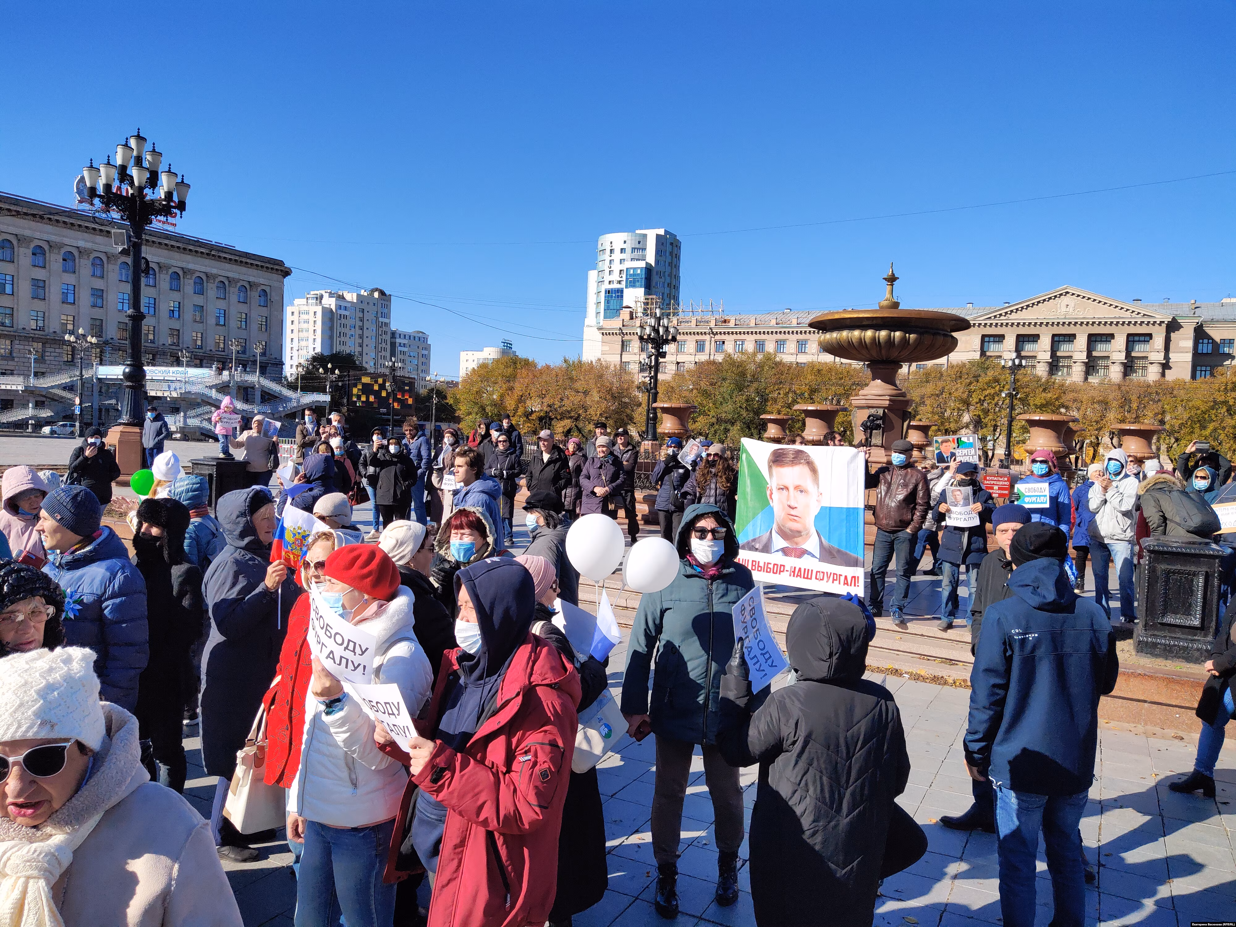 - Протесты в Хабаровске продолжаются уже три месяца подряд. Их участники требуют справедливого разбирательства дела экс-губернатора Сергея Фургала. Поскольку власть не отреагировала на их требования, протестующие стали выдвигать политические требования, в том числе отставку президента Владимира Путина.
