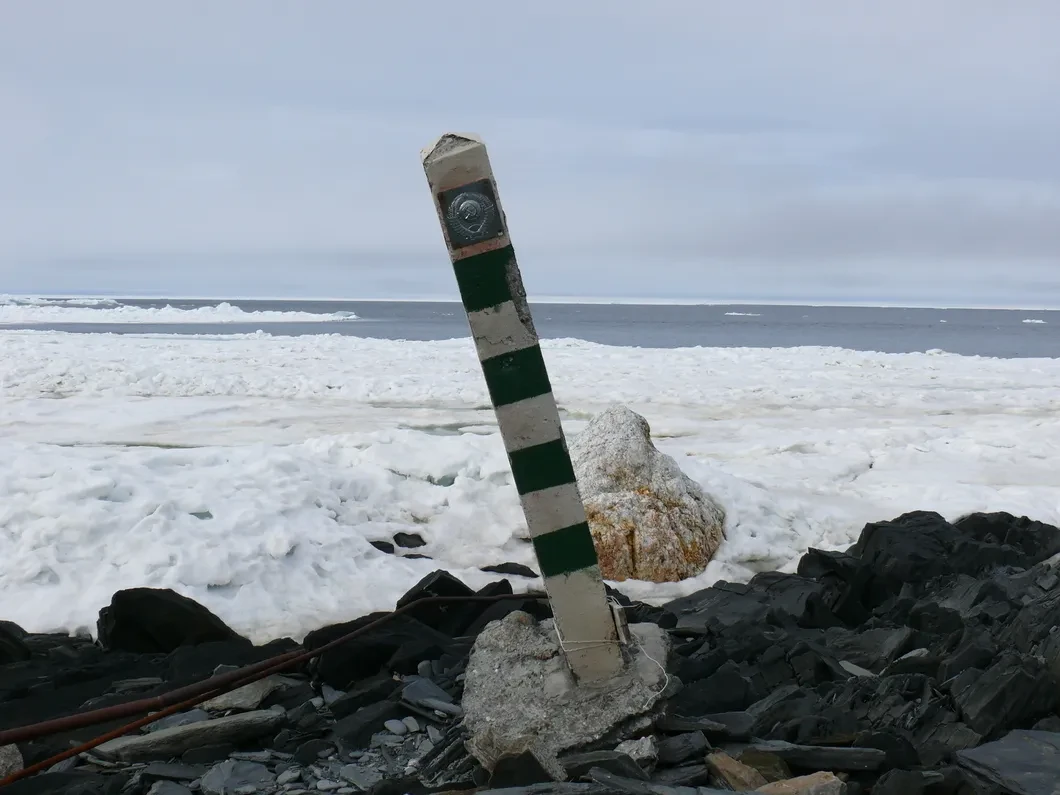Знак гидрографов 1941 года (поставлен экспедицией на судне «Норд») и сегодня прекрасно заметен с воды.