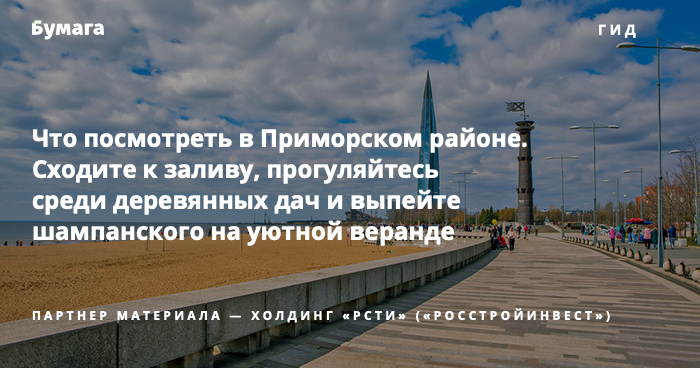 Вместе с партнером материала — холдингом «РСТИ» («Росстройинвест») «Бумага» рассказывает, чем Приморский район хорош для жизни и развлечений. Материал подготовлен с помощью клуба друзей издания — читатели и сотрудники советовали свои любимые места.