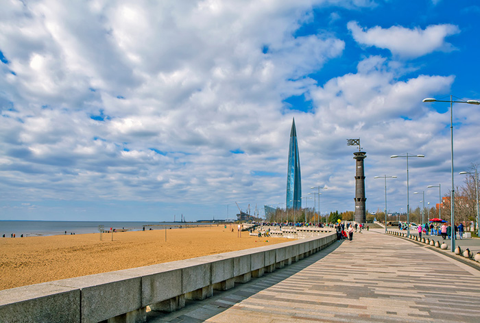 Одна из главных причин, по которым петербуржцы часто наведываются сюда, — набережная и пляж Финского залива, откуда открывается панорамный вид на воду и «Лахта Центр». Если захочется перекусить, можно заглянуть в торговый центр «Питерлэнд» неподалеку. А по Яхтенному мосту удобно перебраться на Крестовский остров — прямо к стадиону «Газпром-арена».