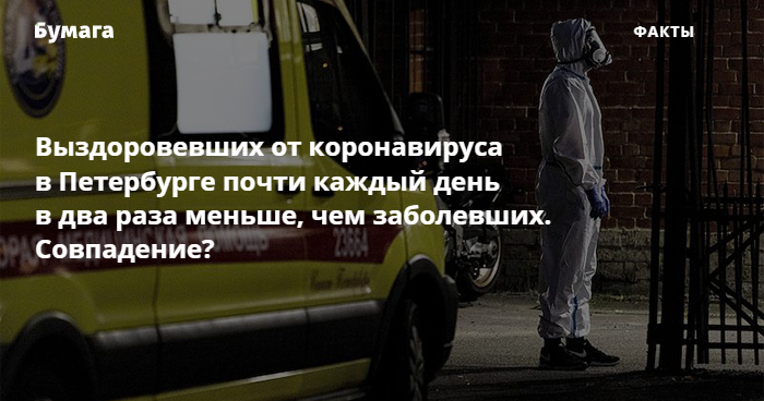 При этом Сарана не объяснил, почему в петербургскую статистику попадают именно числа в пропорции 2:1. «Бумага» направила уточняющие вопросы в комитет по здравоохранению, но не получила ответа.