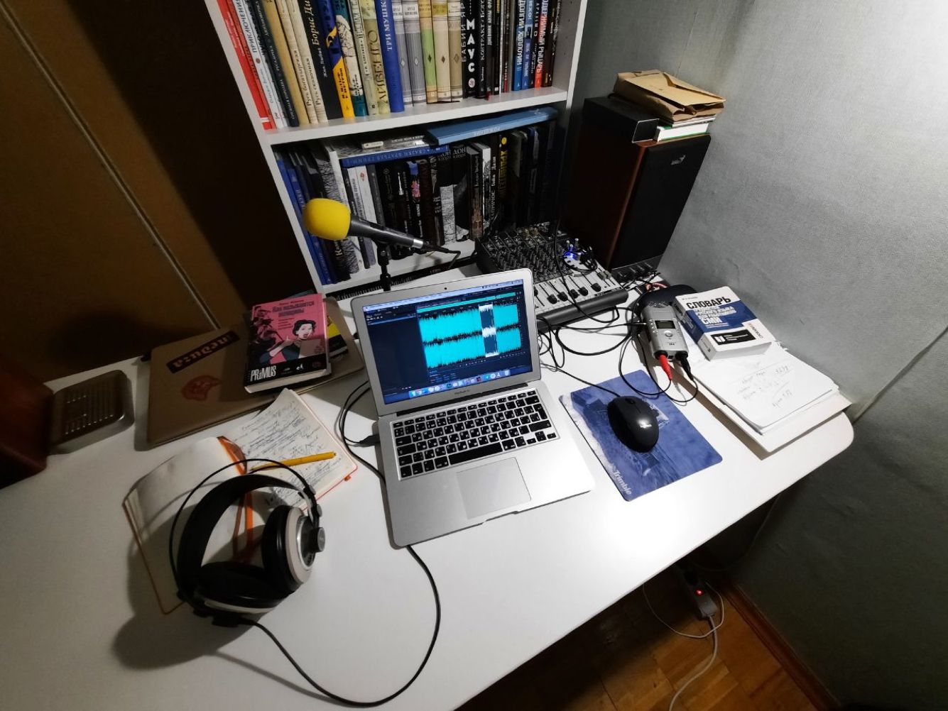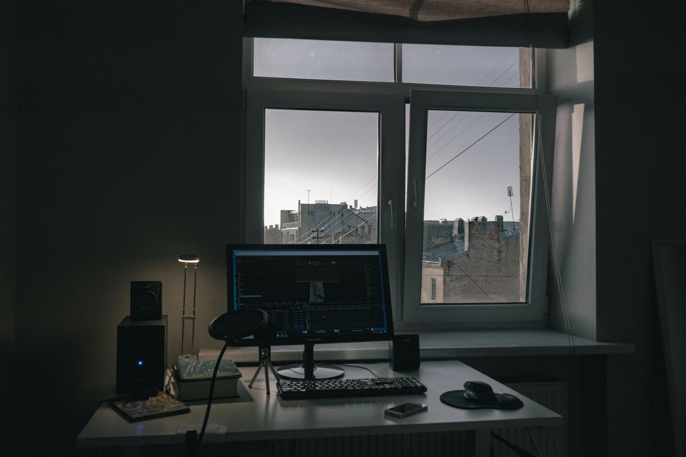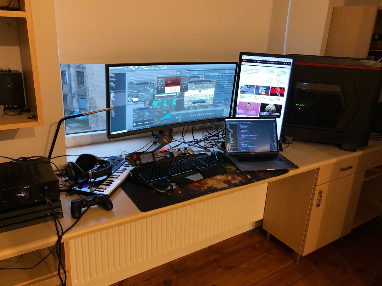 Как только день сменяется ночью, рабочее место превращается в музыкальную студию. А так как мои соседи не разделяют моей тяги к прекрасному, то, конечно, приходится работать в наушниках.