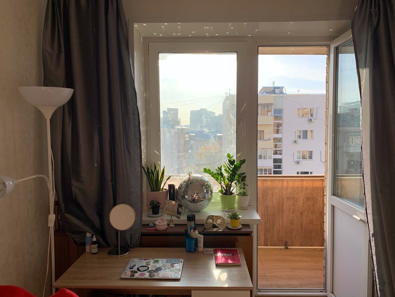 Лампу в подарок сделал (!) папа моей девушки. Больше источников света — больше уюта. Видимо, по тем же соображениям мы так и не сняли гирлянду с прошлого Нового года.
