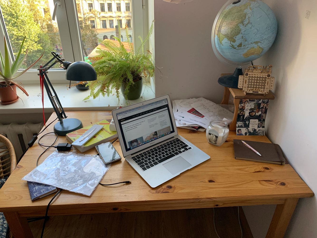 Такой глобус мне подарили много лет назад. В Москве он был почти единственным украшением, которое ездило за мной из квартиры в квартиру, но в Ригу мы его не повезли. И вот в какой-то момент жена сделала мне сюрприз и подарила такой же для интеграции в новую обстановку. Потом мы переехали к нашим друзьям Поливановым (которые уехали в Москву), и оказалось, что у них тоже есть такой глобус. Так что теперь у нас их, считай, три. Вечерами он уютно светится (когда не забываю включать).