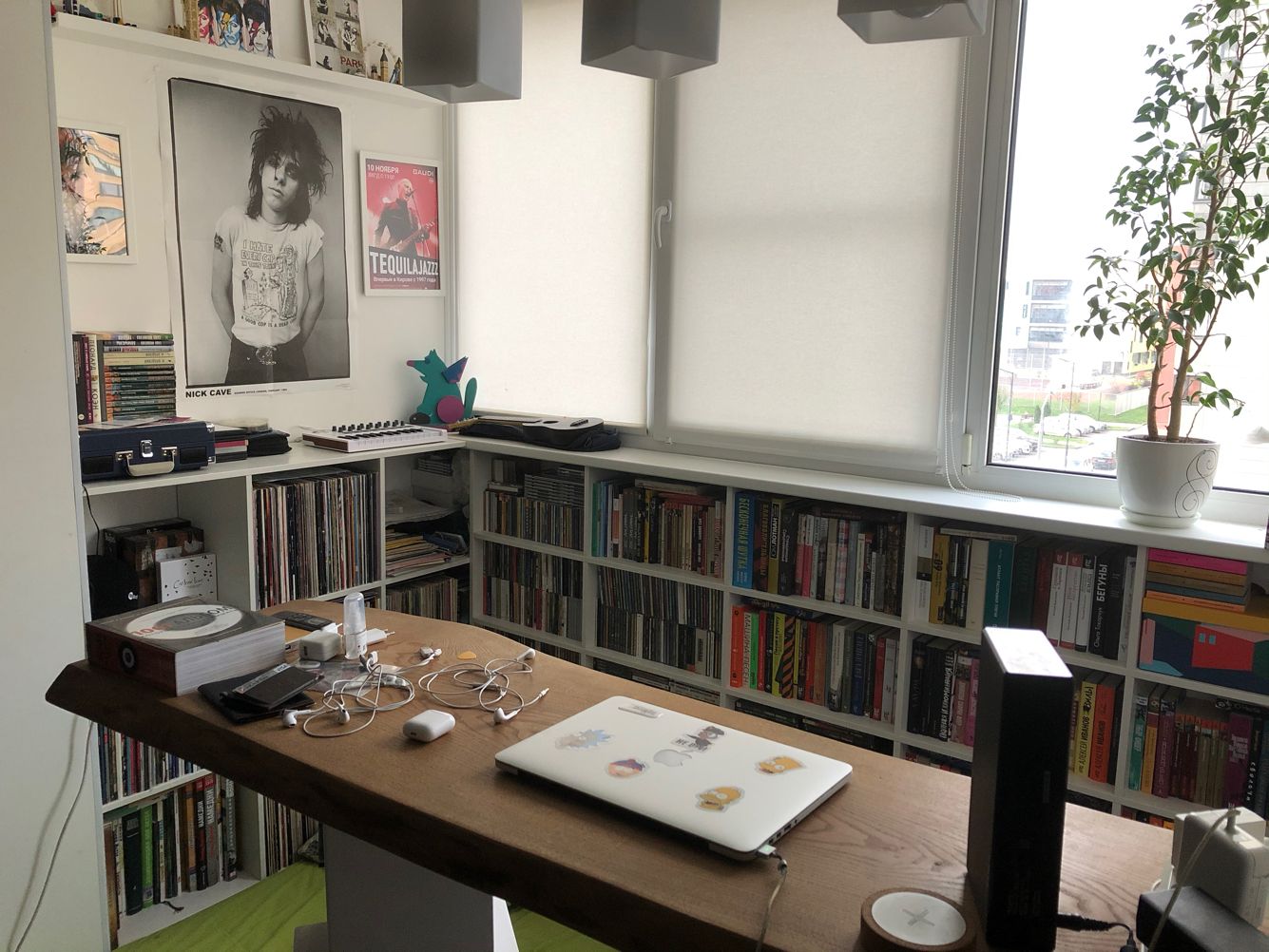 Концерт я организовал несколько лет назад в моем родном городе Кирове. Висит в назидание, чтобы больше никогда не пытался делать концерты самостоятельно. Не, вообще концерт был отличный, но финансово я прогорел. Рядом там еще постеры Ника Кейва и Дэвида Боуи, купленные на рынке в лондонском Камден-Тауне.