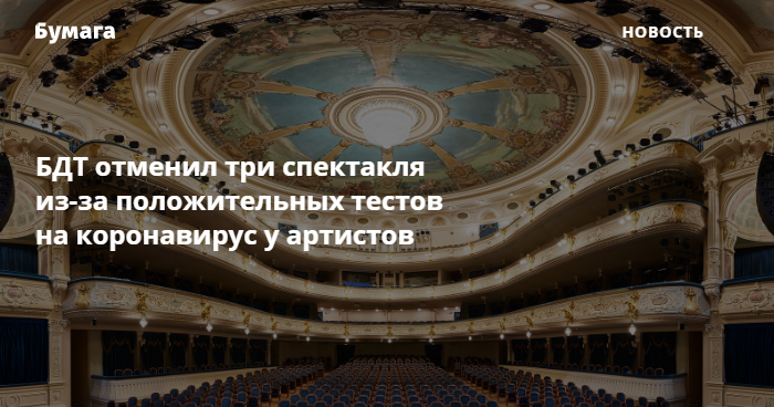 БДТ имени Товстоногова объявил об отмене ближайших спектаклей из-за положительных тестов на коронавирус у артистов. Об этом говорится на странице театра во «ВКонтакте».