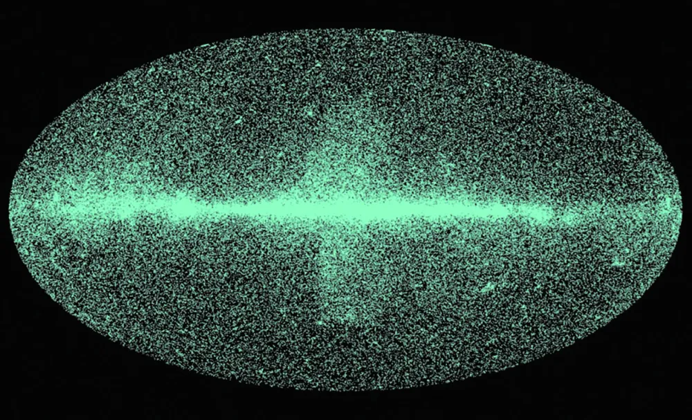 Однако такая низкая светимость у центральной черной дыры была не всегда — об этом свидетельствуют звездные диски, предполагающие большие аккреционные диски и так называемые пузыри «Ферми» по сторонам от галактической плоскости (рис. 5). Эти пузыри — свидетельство былых джетов, бивших из центра Галактики много миллионов лет назад. Эти джеты накачали два эллиптических облака протонов высоких энергий, которые летают в них все эти миллионы лет и излучают гамма-кванты высоких энергий при столкновениях с частицами межзвездной среды.
