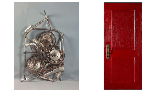 © Государственная Третьяковская галерея Слева: А.П. Жданов. Коляска. 1972. ОбъектСправа: М.А. Рогинский. Дверь. 1965. Объект В прихожей на самом видном месте висела знаменитая «Коляска» Александра Жданова, неизменно встречавшая и провожавшая всех входящих. Все уже собрались. Он познакомил меня со своей женой, художницей Илоной, больше походившей на его дочь: она была моложе его на 30 лет. Оба сказочно прекрасны своей несоветской красотой. У них было двое маленьких детей, Дима и Филипп. Картины и объекты жили везде — на стенах и на полу...