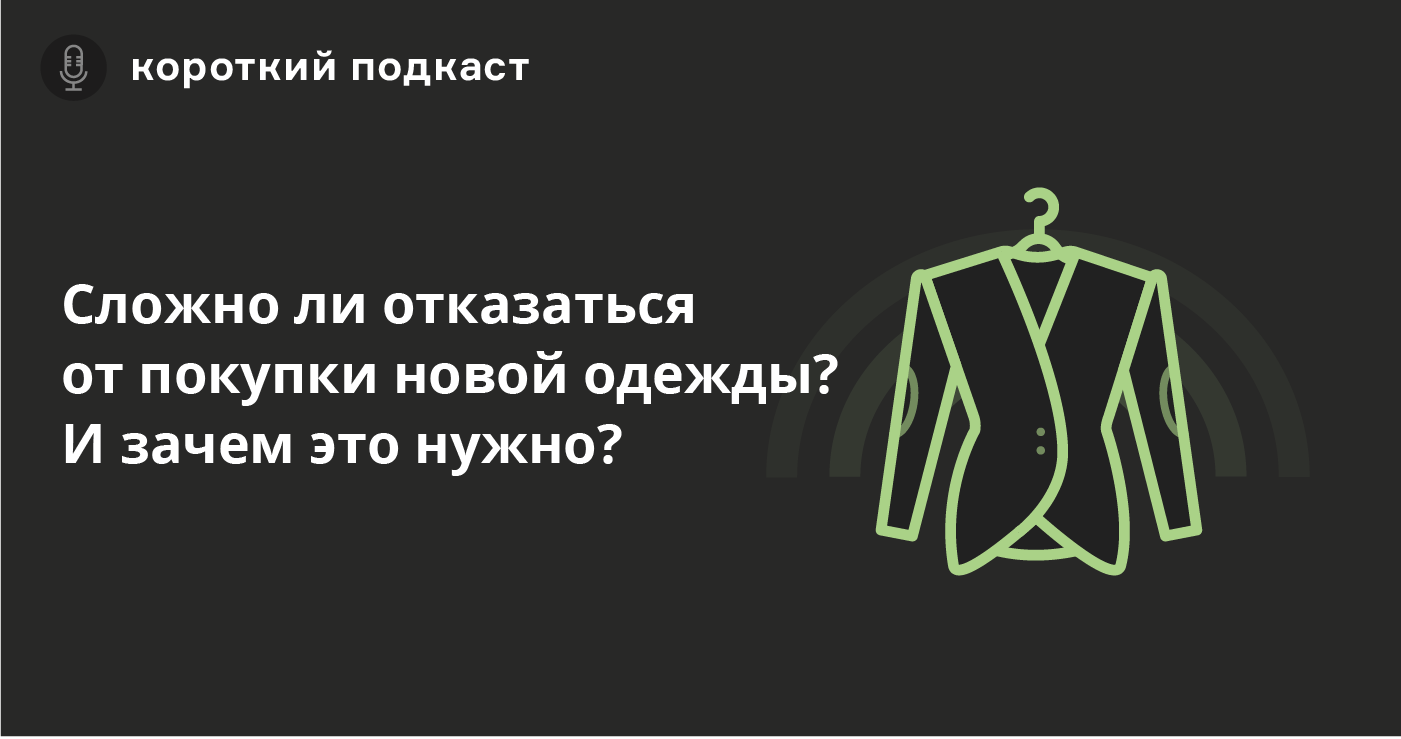 В спецвыпуске Короткого подкаста обсуждаем ответственное отношение к моде. Ведущая эпизода — стилист и автор рассылки «Бумаги» об одежде Саша Добрянская — объясняет, как осознанно формировать свой гардероб. А экоактивистка, основательница секонд-хенда и фотограф рассказывают, зачем стараются отказаться от покупки новых вещей.