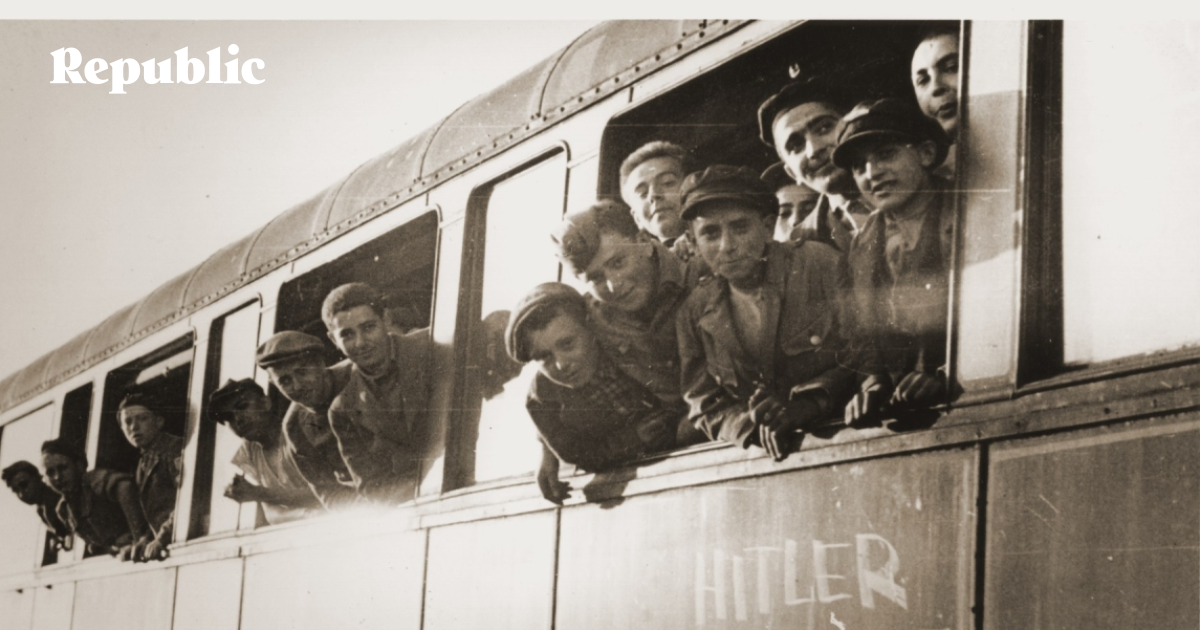 Еврейские дети и подростки, освобожденные из концлагеря Бухенвальд, отправляются домой во Францию. Июнь 1945
