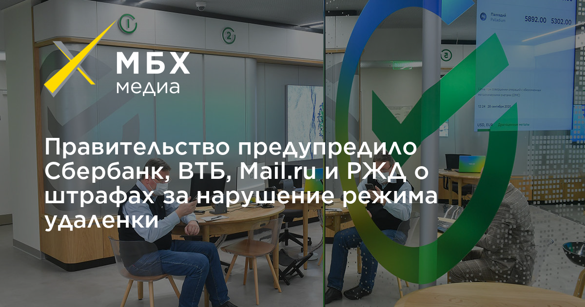 Правительство предупредило Сбербанк, ВТБ, Mail.ru и РЖД о штрафах за нарушение режима удаленки