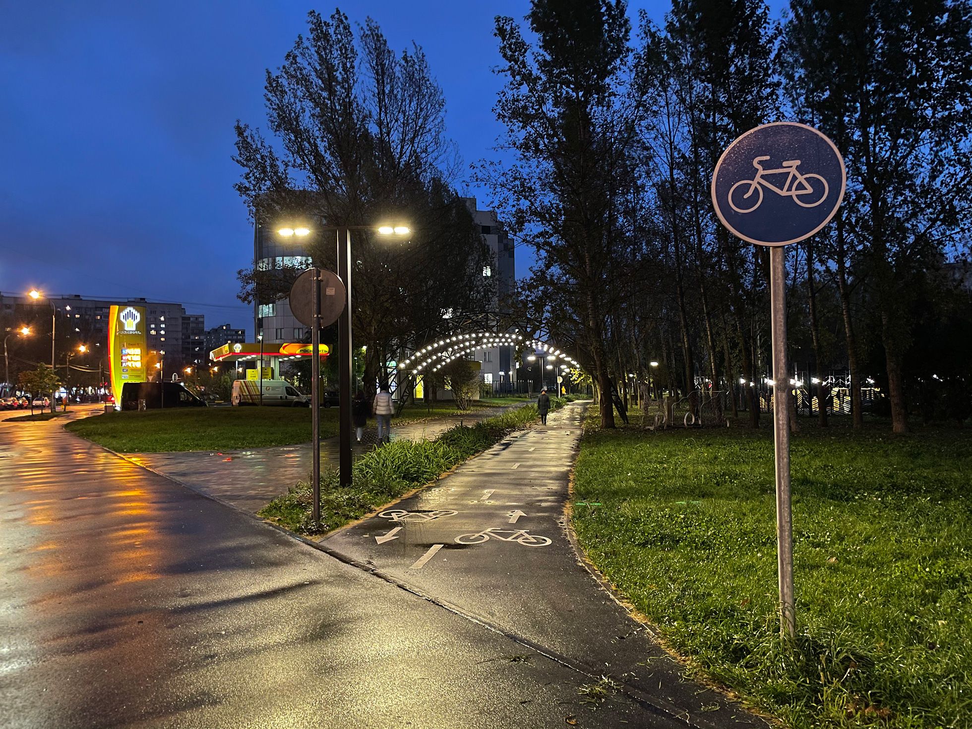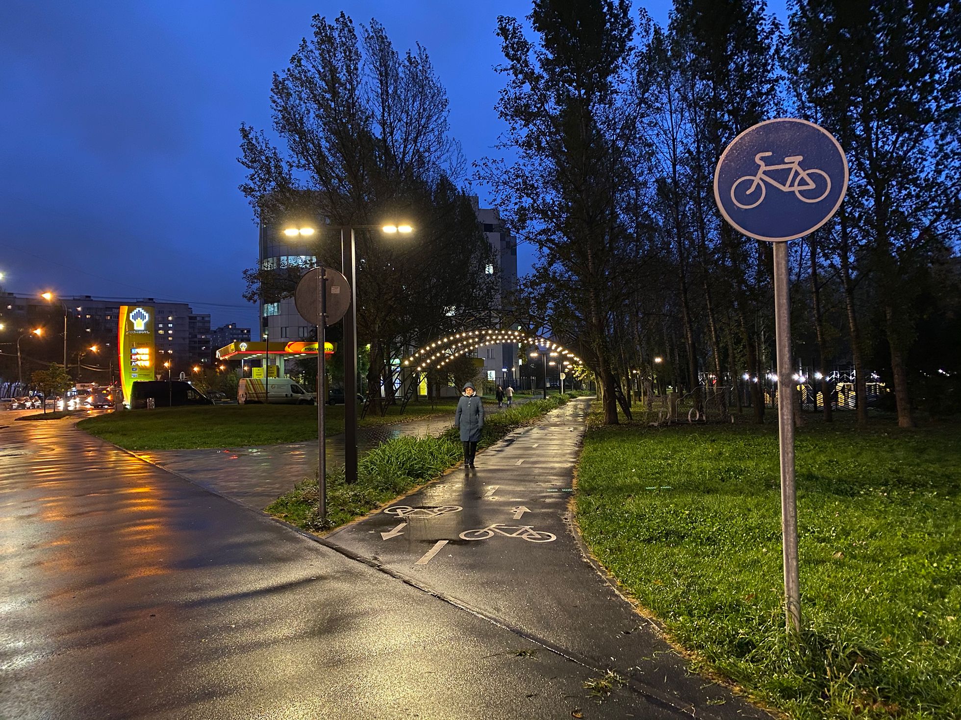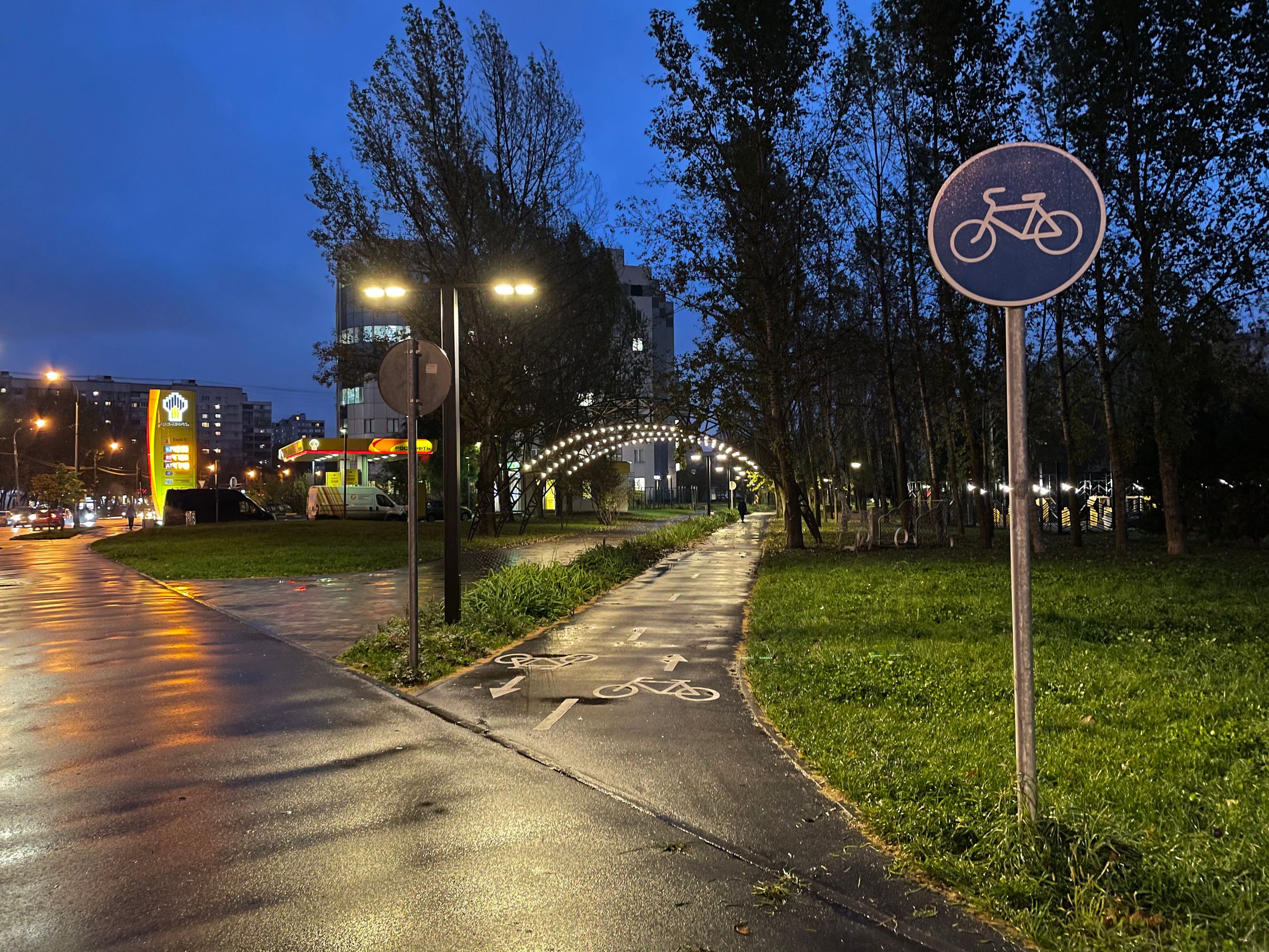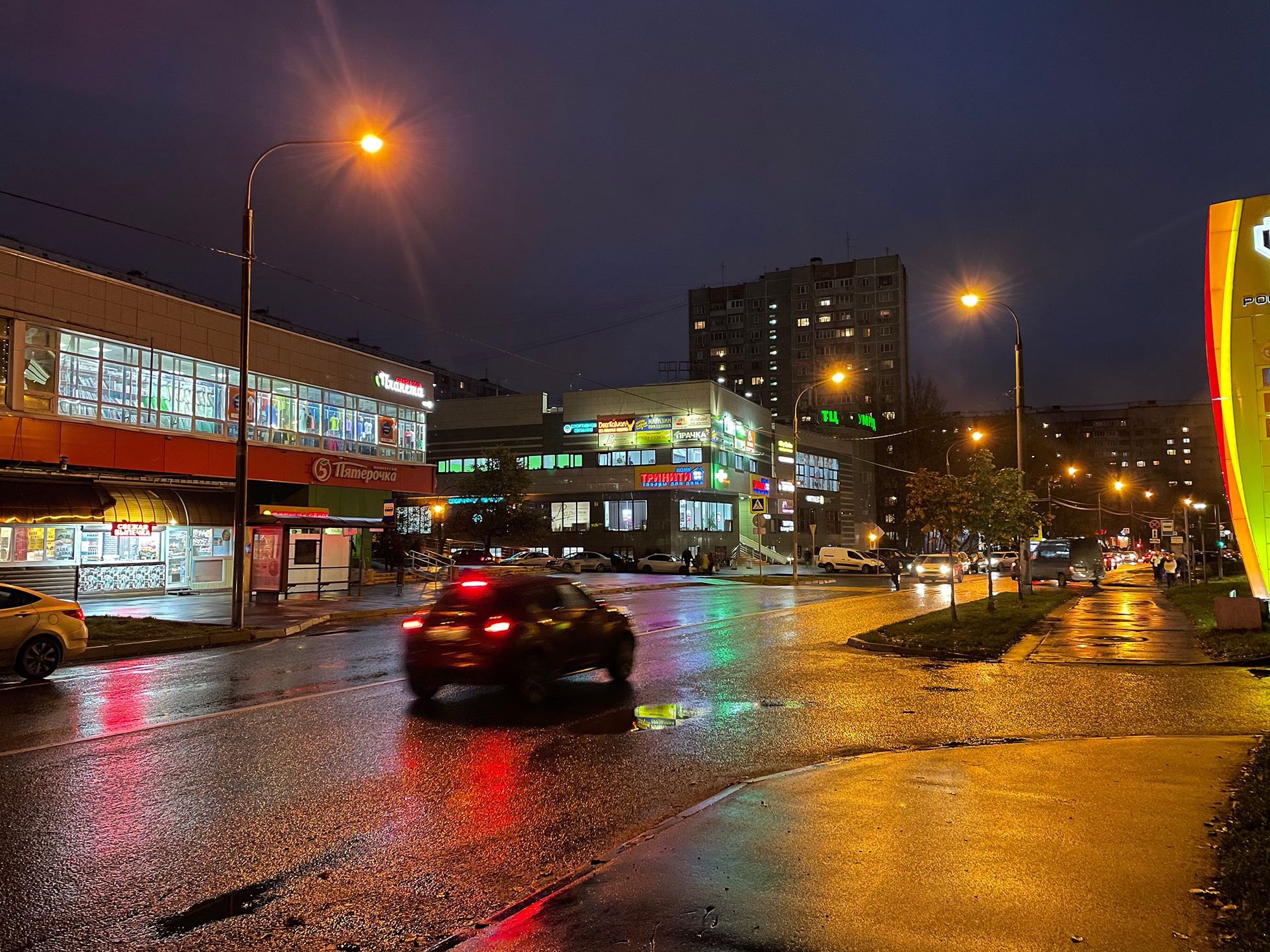 Apple много рассказывает о вычислительной фотографии — это когда снимки дорабатывают нейросети. Скорее всего, север Москвы так похорошел именно из-за них. Так вот, на новых айфонах одно удовольствие фотографировать неоновые вывески, лужи, блики и отражения. Чем темнее, тем красивее!