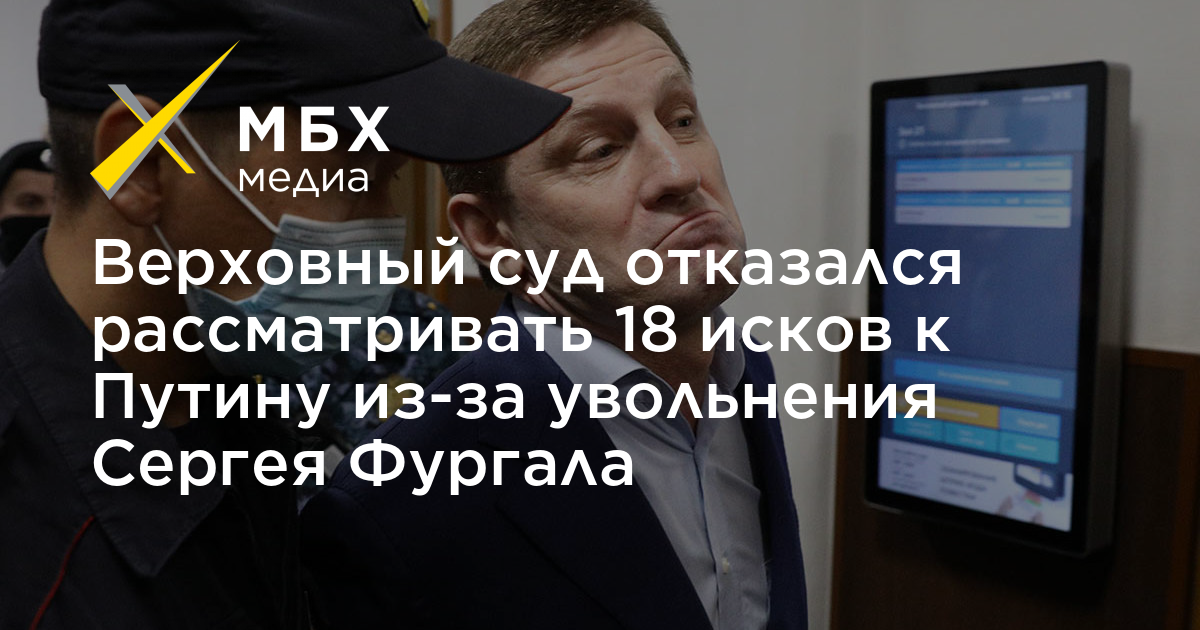 Верховный суд отказался рассматривать 18 исков к Путину из-за увольнения Сергея Фургала