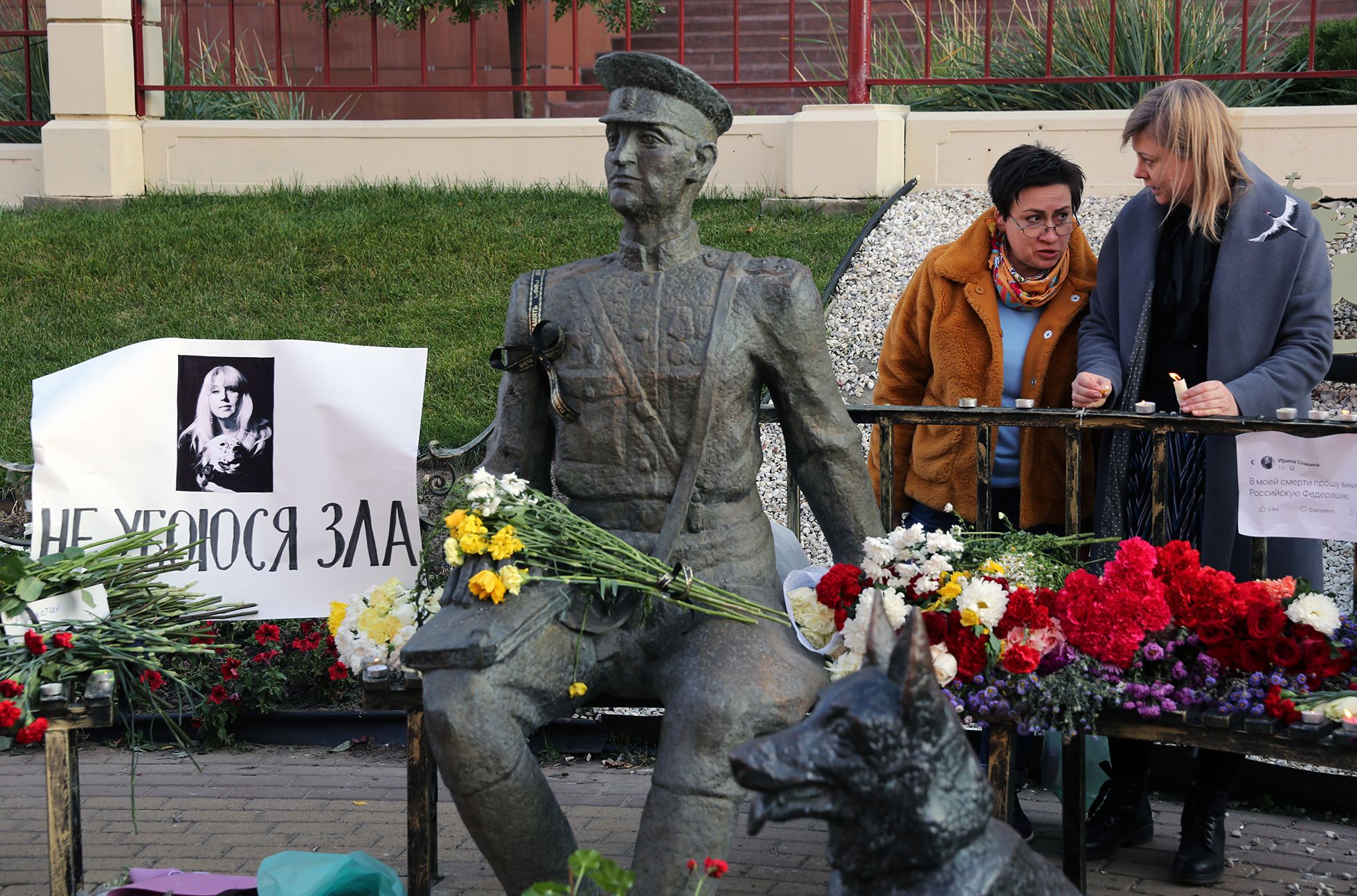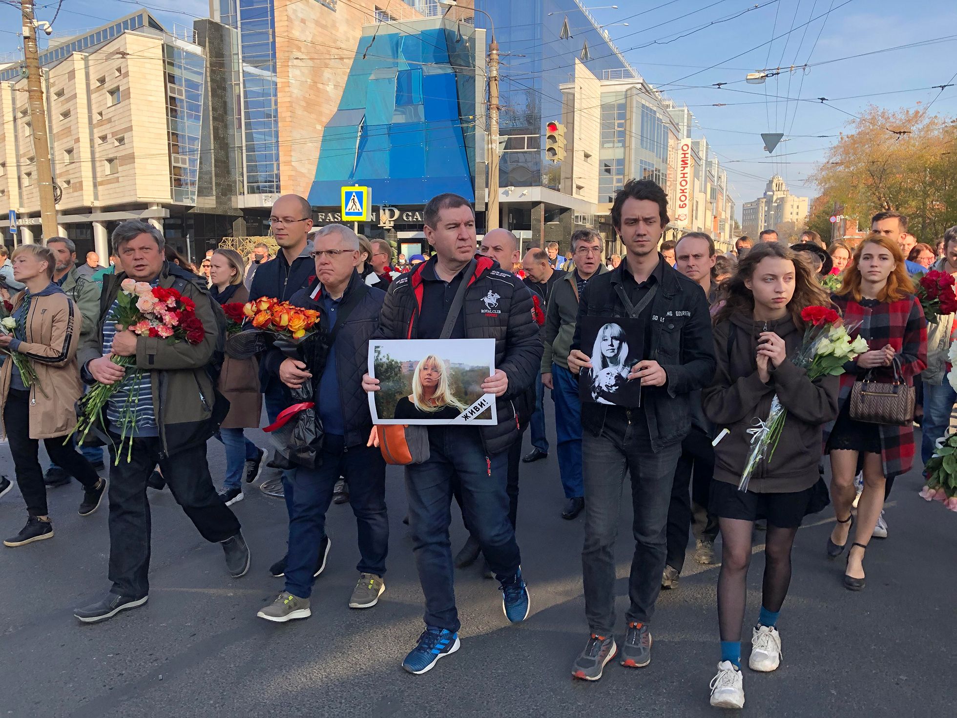 Hundreds came to the House of Scientists to pay their respects to Slavina on October 6. “They killed Irina!” said Stanislav Dmitryevsky, an acquaintance of Slavina’s and a human rights defender. “Stop keeping silent, stop being afraid! If we sit down again, get fired up, shed tears, and then just go our separate ways, it means Irina died in vain.”