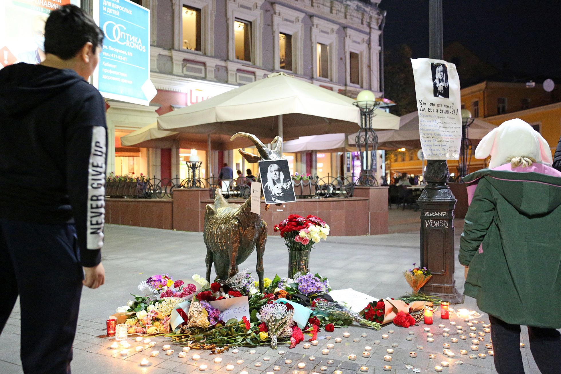 At first, municipal services in Nizhny Novgorod cleared the flowers and candles from the memorials every night. The police stopped all attempts by Irina’s friends to organize a vigil at the spot where she died. Irina’s son Vyacheslav complained that the police didn’t allow anyone to be near the memorial at night.