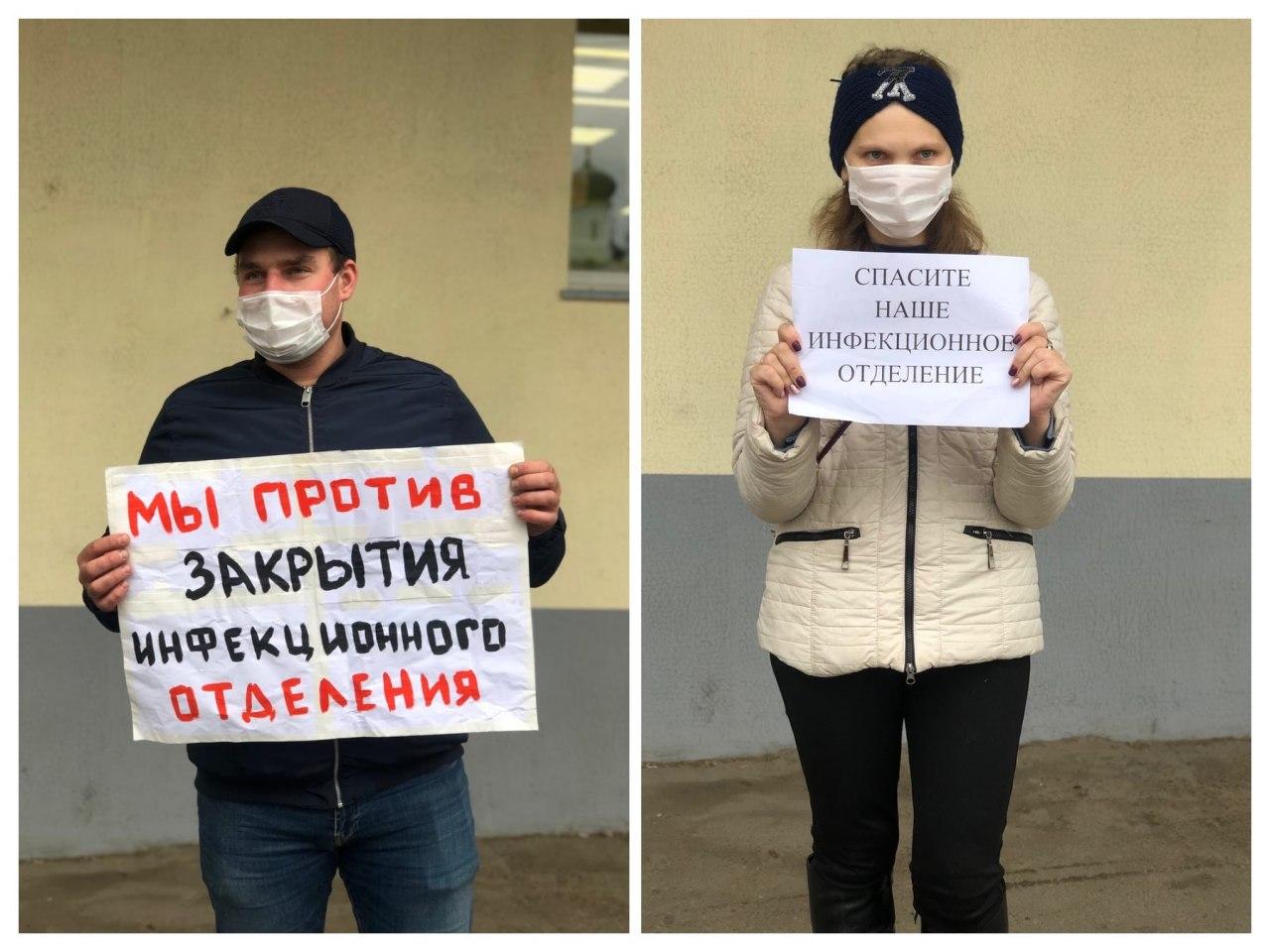 Они стояли с самодельными плакатами "Мы против закрытия инфекционного отделения" и "Спасите наше инфекционное отделение". Проходящие мимо люди поддерживали пикетчиков, говорили, что те молодцы, и обещали при необходимости выйти на митинг.