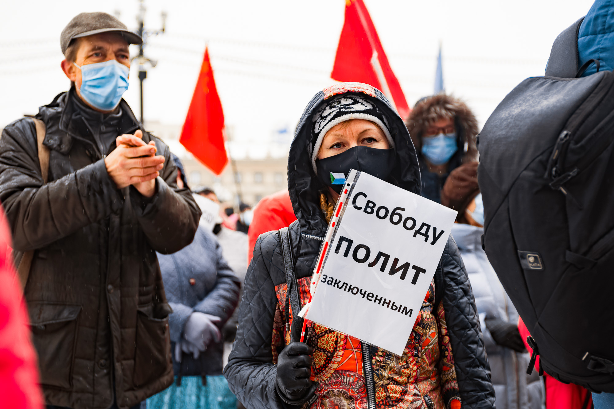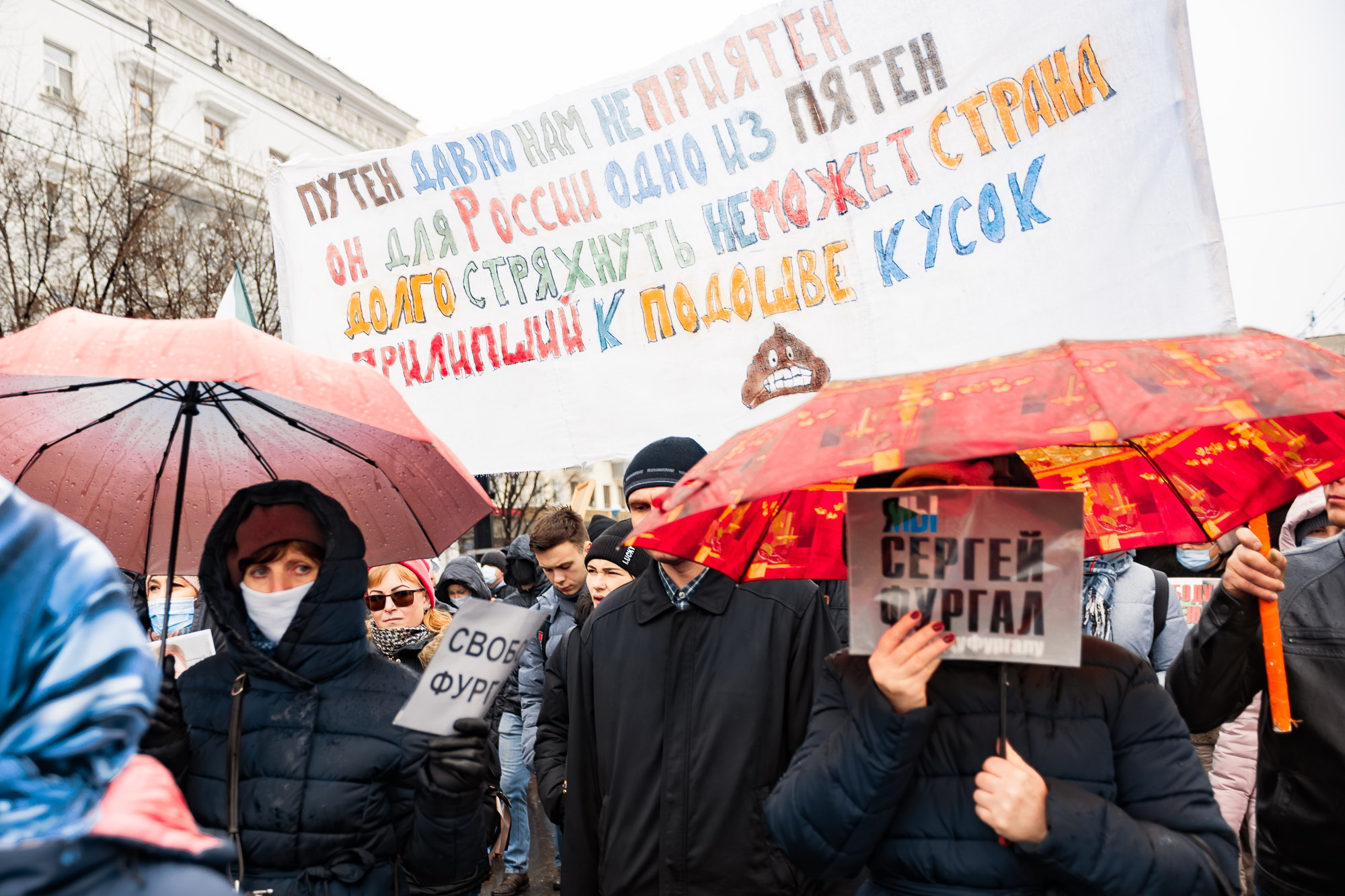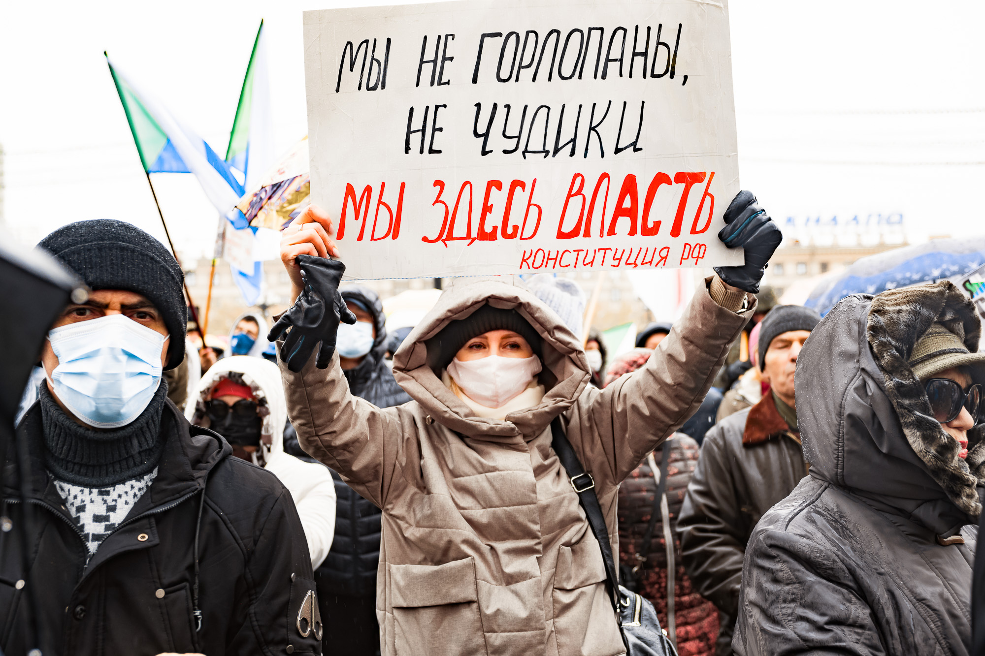 В Хабаровске 16-ю субботу подряд люди вышли на массовую протестную акцию. Это был 106-й день хабаровского протеста. Несмотря на мокрый снег, слякоть и холод, люди прошли шествием по центру города – правда, на сей раз усеченным маршрутом. По словам участников сегодняшней акции, зимой все будет продолжаться в том же режиме: терпения у них хватит.