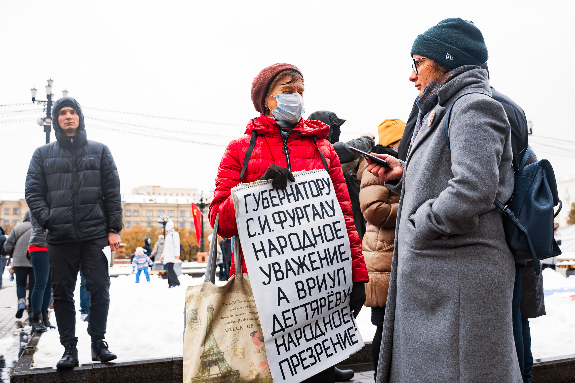 – Хотелось бы, чтобы по субботам ходили как-то. Каждый вечер сейчас полиция всех в наглую в лицо фотографирует. Понятно, что всех будут тягать на штрафы. Мы, конечно, как можем, помогаем, собираем, но денег-то не безграничный карман. Надо что-то другое думать. Может, в краевую думу обратиться, чтобы они высказали недоверие новому врио Дегтяреву…