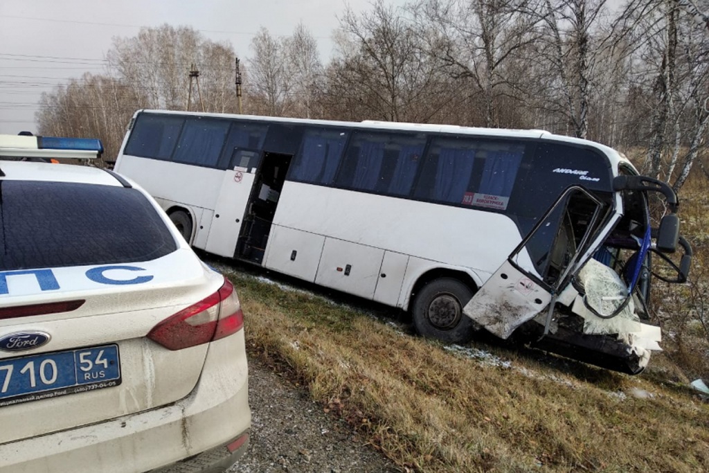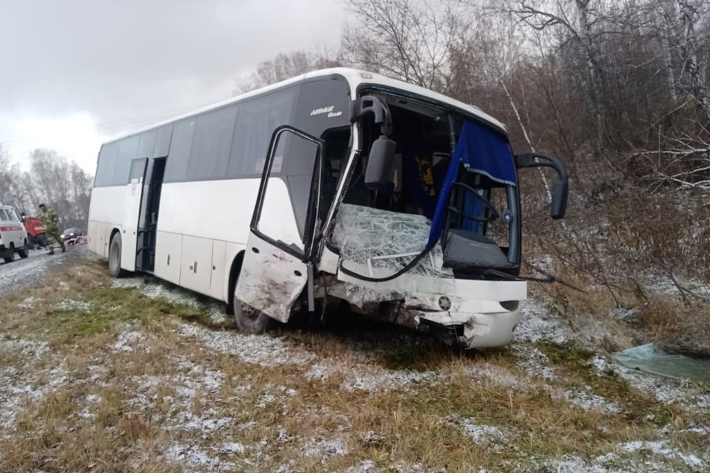 В Болотнинском районе Новосибирской области столкнулись пассажирский автобус и микроавтобус. Четверо погибли, двое пострадали. ФОТО