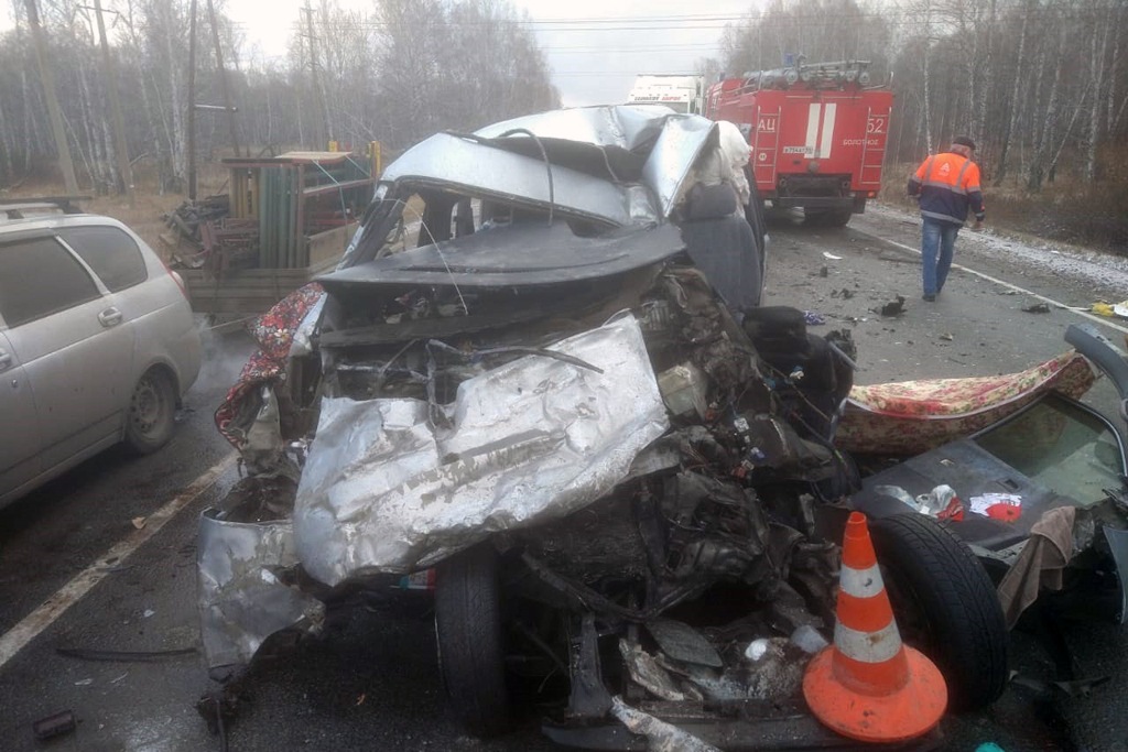 Фото с места аварии в Новосибирской области, в которой погибли дети