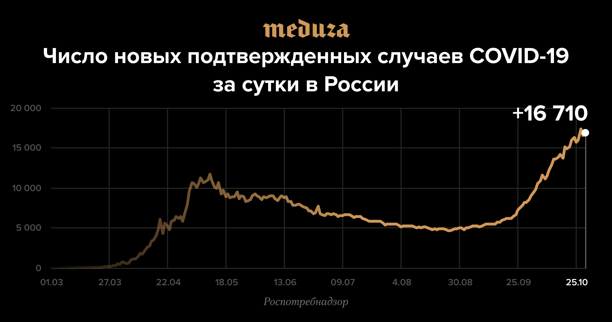 Абсолютный рекорд суточного прироста заболевших COVID-19 в России был установлен 23 октября, тогда выявили 17 340 случаев за день.