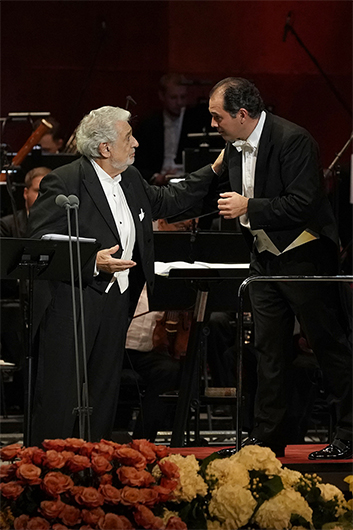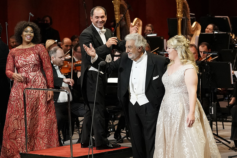 Так что остается только преклониться в изумлении перед роскошным осколком прежней «нормальной» жизни оперного мира, вдруг выплывшим в центре Москвы на гребне второй волны пандемии. Максимально полный (насколько позволяет Роспотребнадзор) зал Исторической сцены, ложи блещут, маски сняты, вечерние платья выгуляны, лишние билетики поклянчены. В этот свой визит маэстро сначала продирижировал местный спектакль «Манон Леско». А на гала-концерт под загадочным названием «Большой и Пласидо Доминго: жизнь в опере» пригласил великолепную команду взошедших и восходящих звезд, которых вопреки (а может, и благодаря) коронавирусу и приостановке мировой оперной фабрики удалось собрать.
