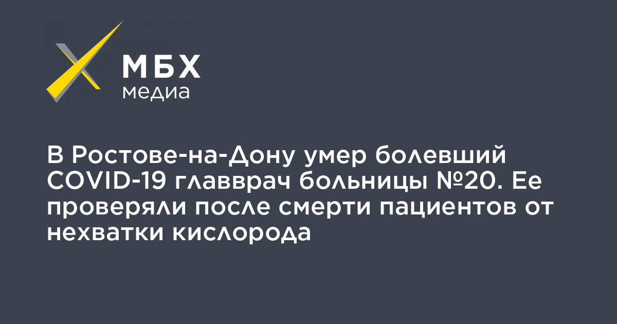 В Ростове-на-Дону умер болевший COVID-19 главврач больницы №20. Ее проверяли после смерти пациентов от нехватки кислорода