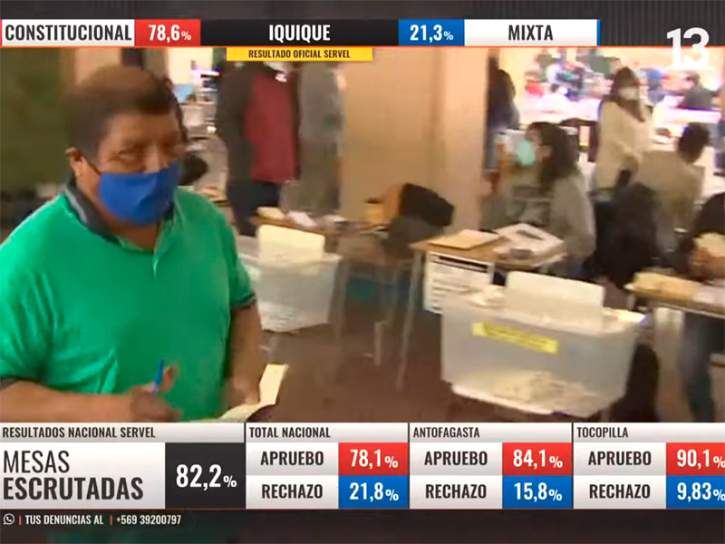 Чилийцы подавляющим большинством проголосовали за то, чтобы переписать конституцию страны, принятую в годы правления генерала Аугусто Пиночета. Почти 90% голосов на прошедшем в воскресенье референдуме уже подсчитано, 78% избирателей проголосовало за изменение конституции, сообщает Русская служба BBC.