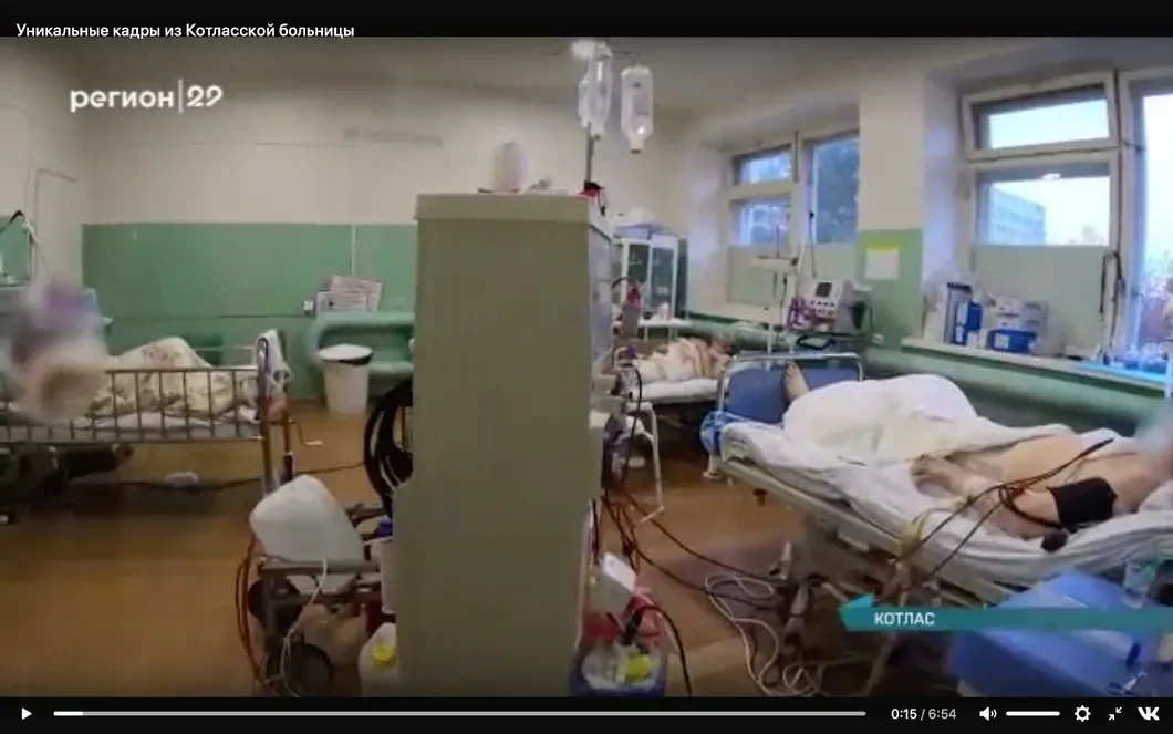 Котласская больница стала символом: в инфекционном отделении 320 пациентов. Мария Сердюк на облетевшем СМИ видео показывает, как они лежат в коридорах на кушетках и раскладушках, — мест нет.