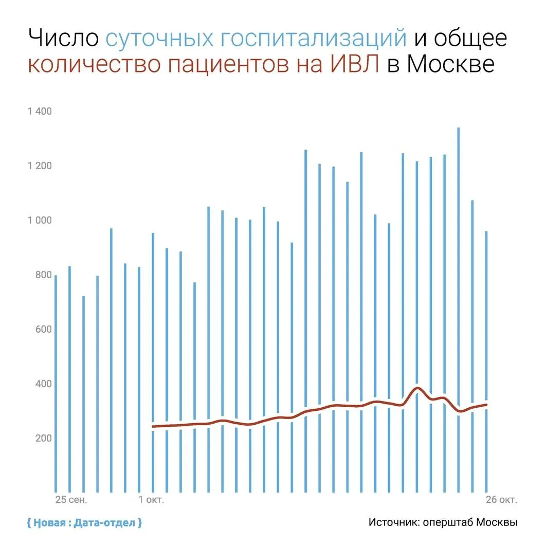 В середине октября мэр Москвы Сергей Собянин заявил, что главный показатель распространения коронавируса — «не то, что мы видим на экранах телевизоров — график выявляемости, а то, чего мы не видим»: госпитализации, пневмонии, число пациентов на ИВЛ и другие данные.