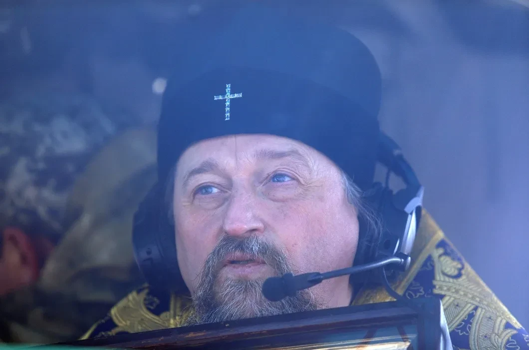 Митрополит Белгородский и Старооскольский Иоанн в вертолете перед совершением воздушного крестного хода против коронавируса над территорией Белгородской области. Фото: РИА Новости