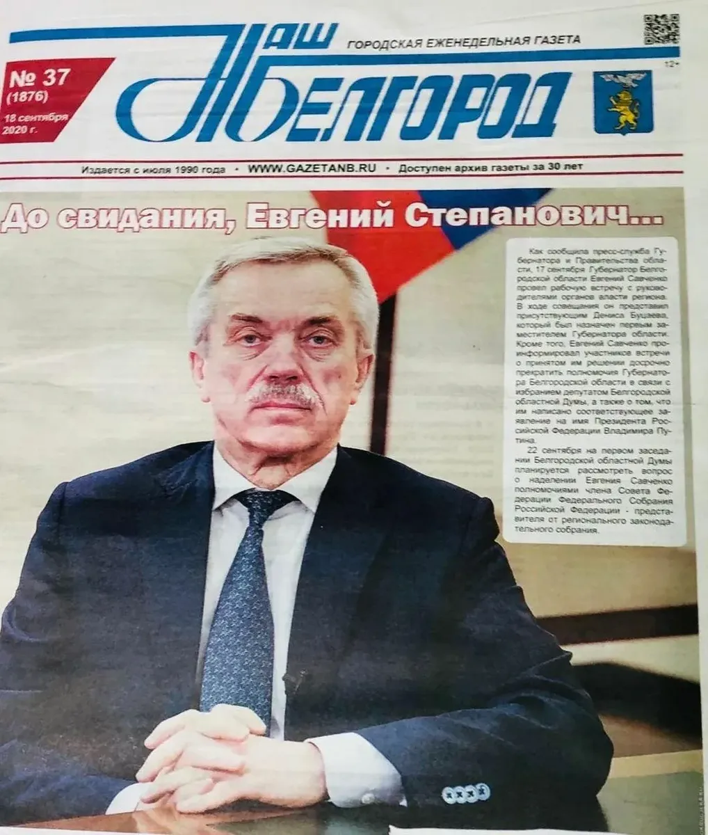 Даже после отставки это никуда не делось: на следующий день после заявления Савченко из киосков пропал выпуск газеты «Наш Белгород», на обложке которого был изображен уходящий губернатор под заголовком «До свидания, Евгений Степанович…». Официальная позиция редакции: весь тираж разошелся по подписчикам, однако на сайте именно этот выпуск изъят из pdf-архива. Негоже бежать впереди паровоза: выпуск вышел до официального одобрения отставки Путиным, так что Савченко всегда мог передумать — а тут его политически похоронили свои же лояльные журналисты.