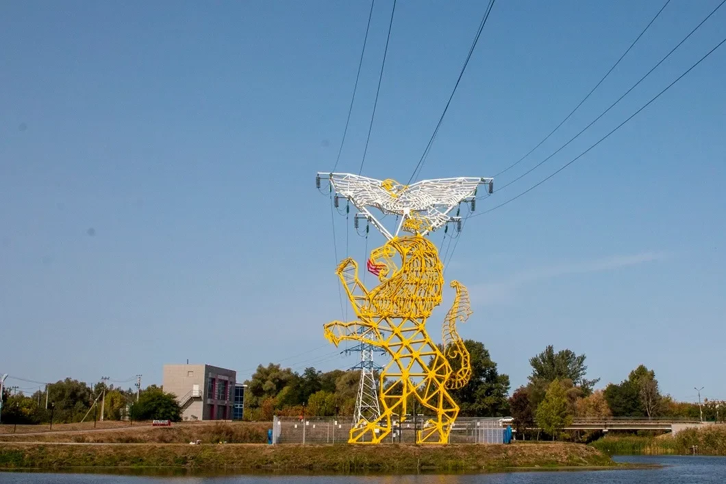 Опора ЛЭП в виде герба Белгорода на набережной Везёлки. Фото: Светлана Виданова / «Новая»