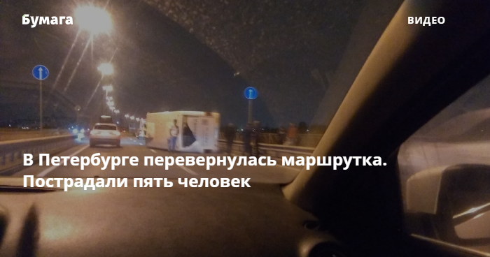 По предварительной информации, около 22:20 водитель ПАЗа совершил наезд на эвакуатор, который в этот момент погружал другую машину. Из-за опрокидывания маршрутки пострадали водитель и четыре пассажира ПАЗа — они получили травмы средней тяжести. Детей среди пострадавших нет.